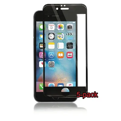 5-pakkaus iPhone 6S/6 Plus kaareva silikaattilasi, Panzer, musta